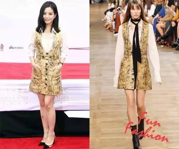 Chloé蟒纹皮裙,我们的“虎妈”也是大写的霸气。