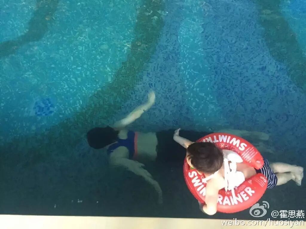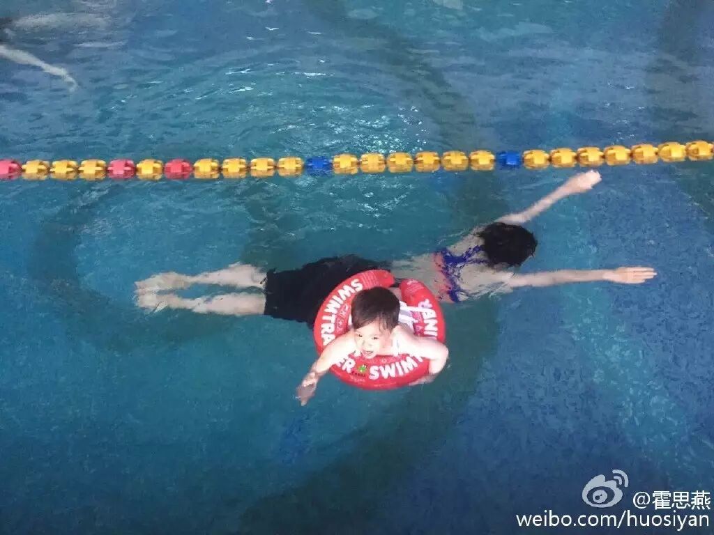 ▲有了嗯哼之后,从小便培养他的运动基因,带着他一起游泳。