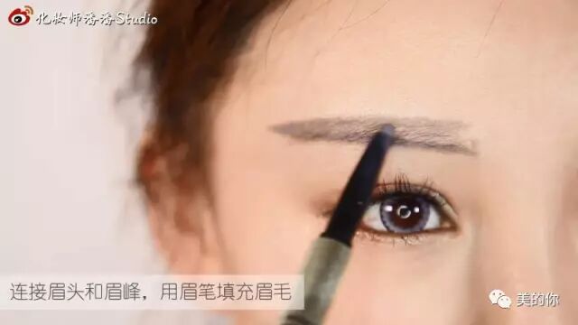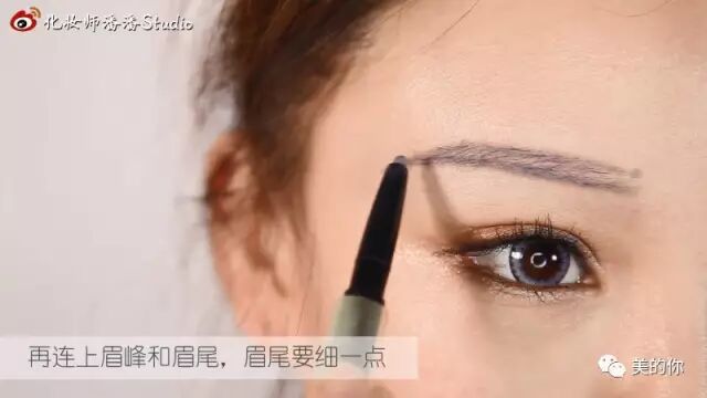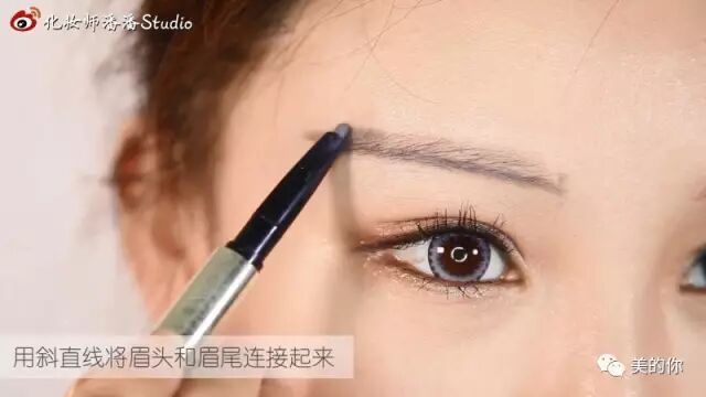2.从眉中间开始画,将眉底和眉尾连接起来