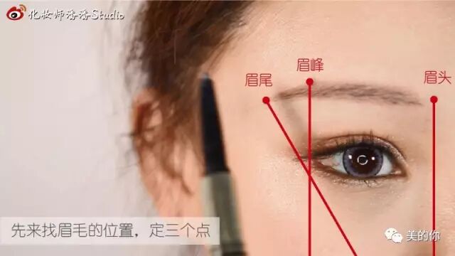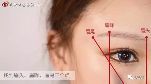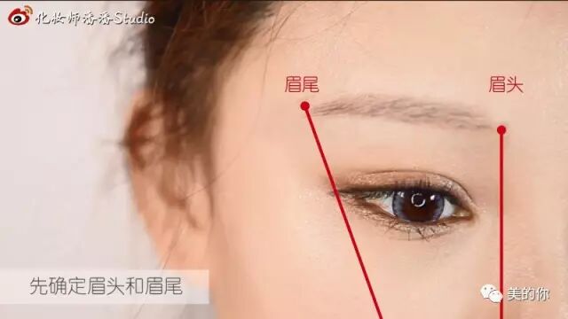 2.画一条底线,眉弓要偏高,眉尾要高于眉头
