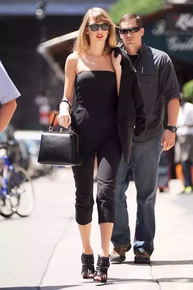 除了一字领,抹胸连体裤也是我们金小妹的爱。