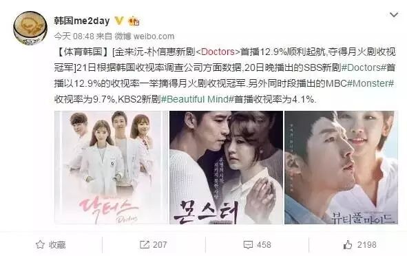 《Dcotors》首播就创下两位数的收视率,以12.9%的收视率一举夺得了收视冠军,而《Beautiful Mind》则是以个位数收视率排名垫底。