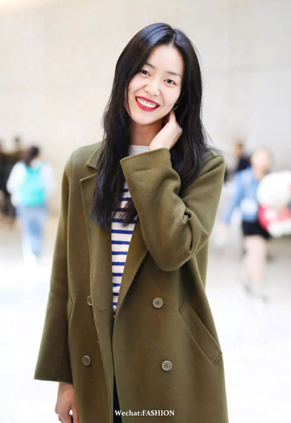 刘雯身穿Me & City军绿色大衣内搭Saint James条纹T恤,手拎Céline鲶鱼包,拼接牛仔裤来自Short Sentence,帅气有型,表姐简直美美美美呆了。