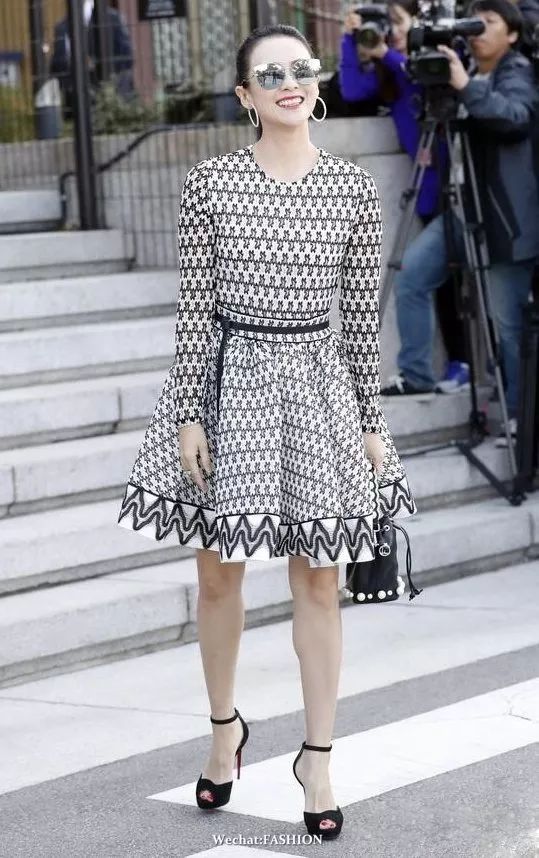 章子怡现身宋慧乔宋仲基的婚礼,身穿Maje连身裙,佩戴Miu Miu墨镜,手拎Fendi水桶包,脚踩Christian Louboutin高跟鞋,气质优雅,完全就是巨星现身秀场的即视感。