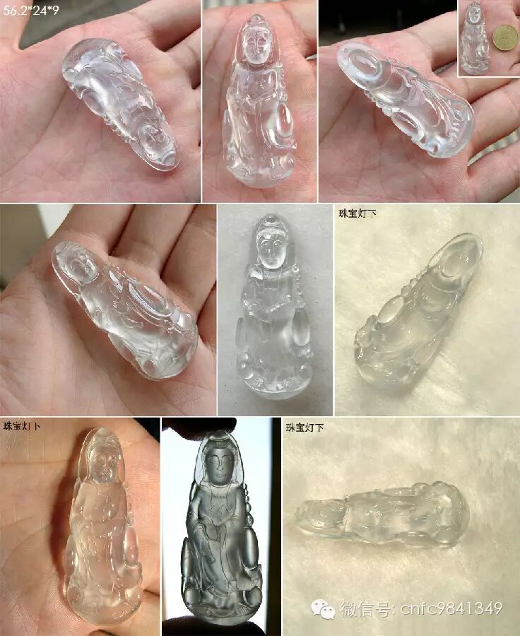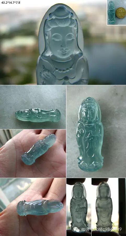 蓝玻璃观音,因为种份比较老,胶感十足,又有底色,透明度稍差一些。