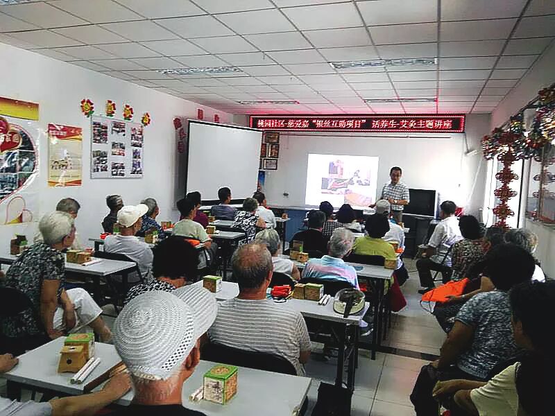 随着人口老龄化的加重,桃园社区根据实际情况,以“为老、敬老、爱老、孝老”为服务重点,促进社区60岁以上老年人健康生活,充分发挥辖区内“银丝共勉”志愿服务队作用,与社区卫生服务中心合作“银丝共勉健康随您行”服务项目,为辖区内老年人提供健康档案管理与指导,并与北京尚森易慧咨询有限公司合作心理咨询服务项目,为辖区内居民提供心理专业咨询辅导支持服务,建立了长效机制。