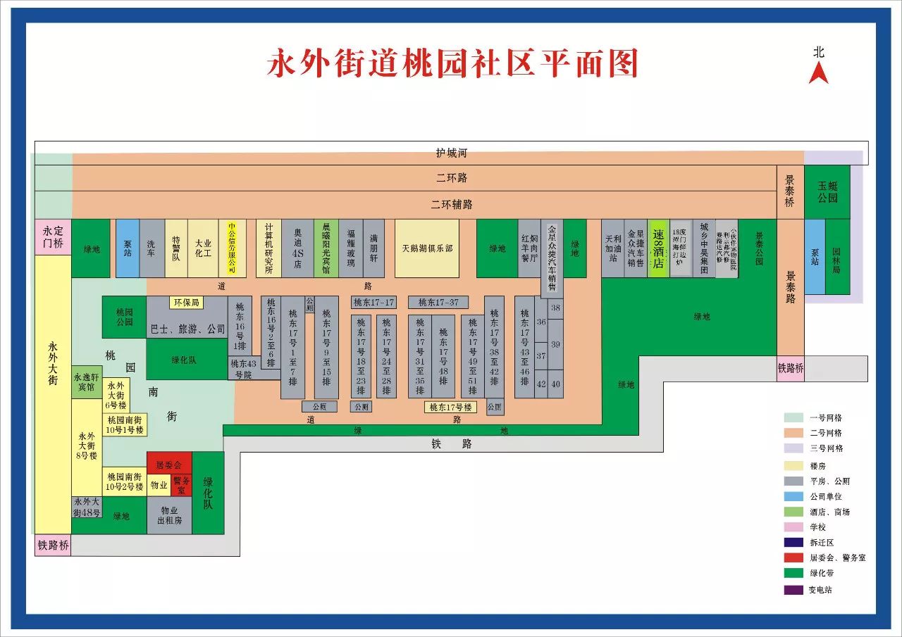 咱永外街道桃园社区地处永外地区东北端,东起玉蜓桥,与丰台交界,西至南中轴路延长线北端,与永定门城楼隔河相望,南以京沪铁路线为界,北到南二环东滨河路,占地面积约0.31平方公里。辖区内有永外大街、东滨河路等3条主干路及桃园南街等5条内街。社区内有人口文化公园、玉蜓文化广场及桃园休闲文化公园三个供居民休闲、健身的场所。社区绿化面积高达50%。微型消防站及居家养老驿站也正在建设中。