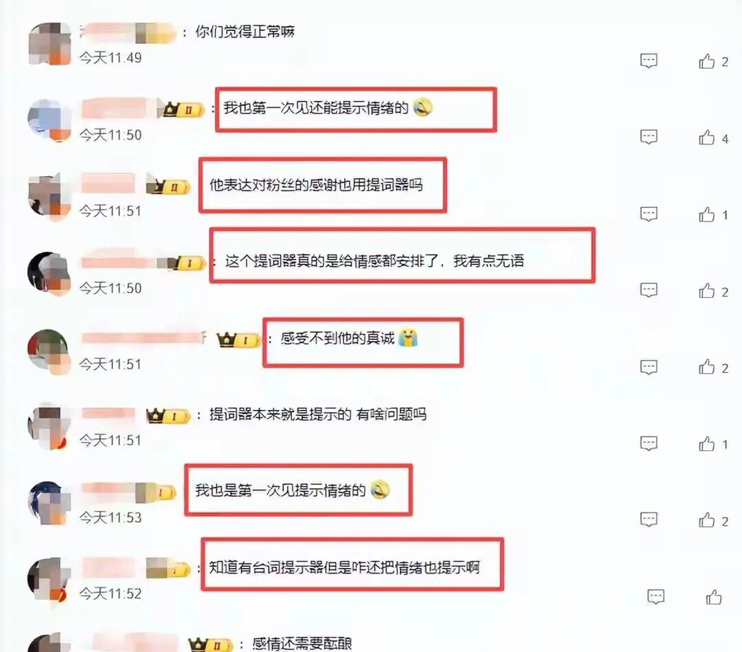 或许提词器只是一个有备无患的工具而已,关键是他对大家的感情是真的,大家都不容易,希望粉丝们还是相互包容。不要让那些刺耳的话语,伤害了一个本身就很好的人。