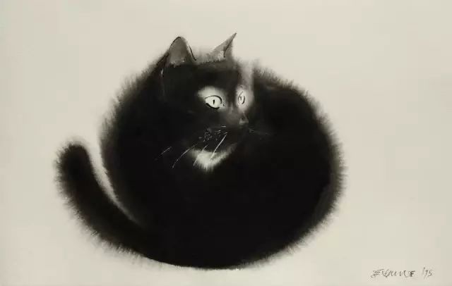 肯定有不少人见过他画的猫猫系列。一坨灵动的墨团加上一双机敏的眼睛,这可不就是我家喵主子么?