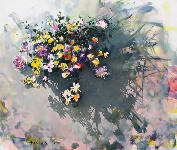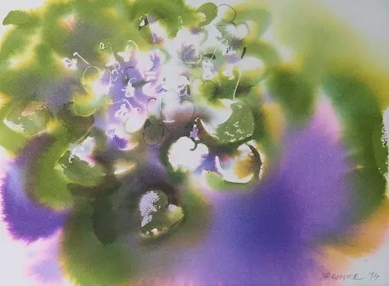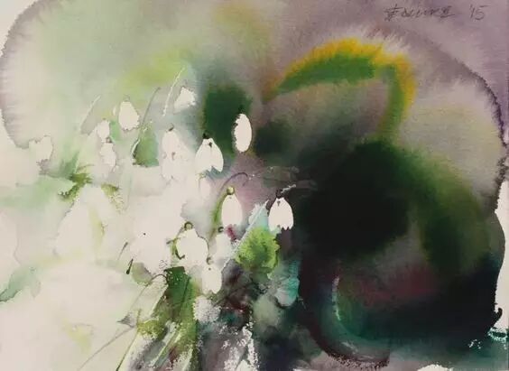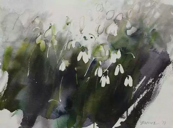 其实他的风景与花卉也画得也是相当不错,将简洁与意境结合得相当灵动。