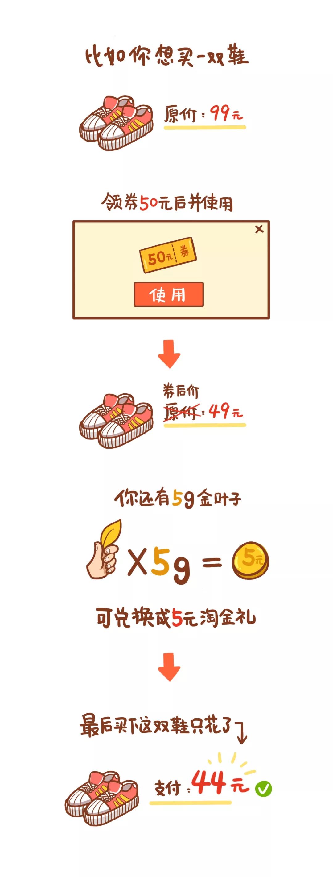然后用你的金叶子兑换成淘礼金就可以啦