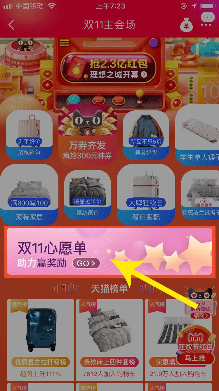 ① 先抽取3次红包(今天红包多)→点击心愿清单入口