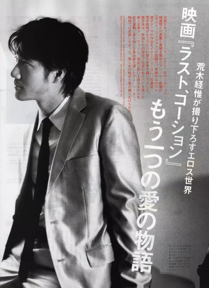 此组照片拍摄于《色戒》在日本公映前,由荒木经惟掌镜,可视为《色戒》的延续。荒木经惟对于情欲的理解与把控成功塑造出了“Lust,Caution”的气氛:情欲即将在汤唯与王力宏之间迸发开来,又带有些许阴谋的气息,空气似乎都变得紧张。