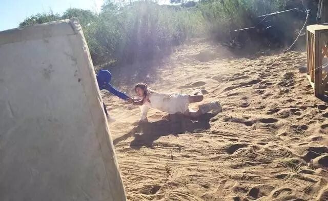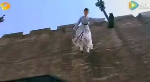 拍起戏来更是动真格,跳城楼、摔悬崖、滚沙子都坚持自己来。