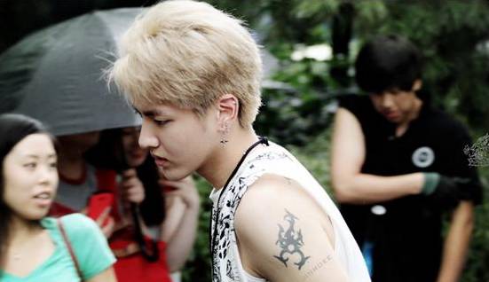 吴亦凡的纹身大部分都是出道前纹上的,细细数起来也是好几处,整体下来很有一种不羁、叛逆少年的味道。