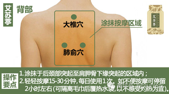 答:(1)涂抹于后颈部突起至肩胛骨下缘突起的区域内。
