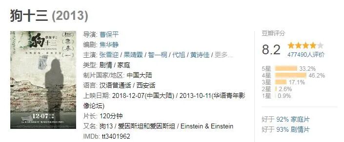 不管怎么说,小张校服代表作《狗十三》倒还是很拿得出手的,豆瓣8.2,拿过柏林的水晶熊评委会特别推荐奖,已经很值得一吹了。