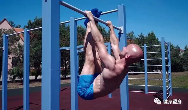 这是一个悬挂练习,此举是第一项做人体旗帜的辅助锻炼,没有这项锻炼就无法增强上臂力。