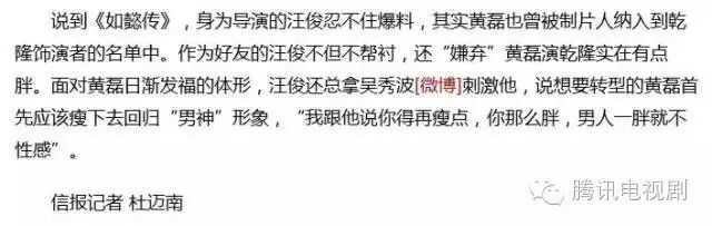 可是,最终男主还是确定了霍建华,那是为啥不选黄磊呢?据导演兼好友汪俊说:因为他太胖了!