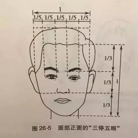 把人脸纵向分为五个等份,以一个眼睛长度为一等份,两眼间距为一等分,眼睛到太阳穴也是一个等分才是标准美人尺
