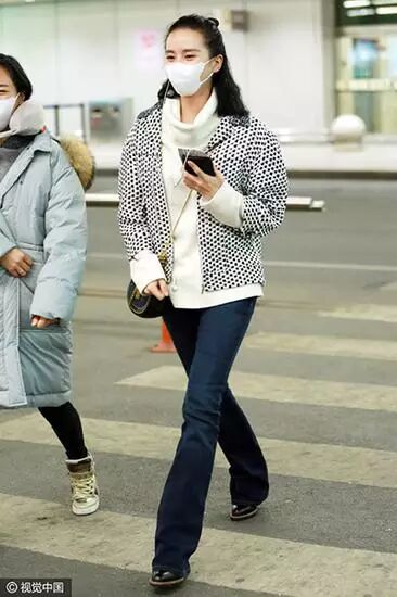 这身衣服很适合一向自在随性的刘芸,不过,能抵抗严寒脱衣露香肩,她为了美确实拼,这很刘芸!