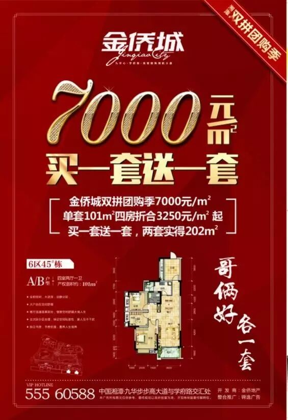 原来啊,此次电子屏正是被中国房企百强金侨集团承包。拉开高端品质楼盘新营销举措的序曲。现下,金侨城推出湘潭团购季7000元/㎡。看似是劲爆史上最高湘潭房价,但是买一套送一套哦。相当划算有没有?单套101㎡四房折合3250元/㎡起,买一套送一套,两套实得202㎡。担心父母不在身边的可以亲情套,好闺蜜一人一套成隔壁,好兄弟各一套成就你的哥俩好,心动没?听起来是不是好嗨森呢?而且在任意商场消费两百元以内,金侨城更是报销返现20%,是不是更嗨森了呢?试一下既不吃亏,又不会怀孕啦。