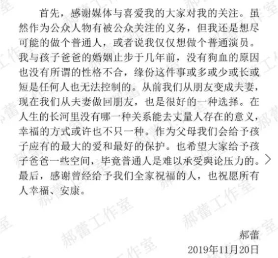 昨天下午,透过工作室,郝蕾发表声明,宣布她和第二任丈夫刘烨(圈外人)早在几年前就已离婚。
