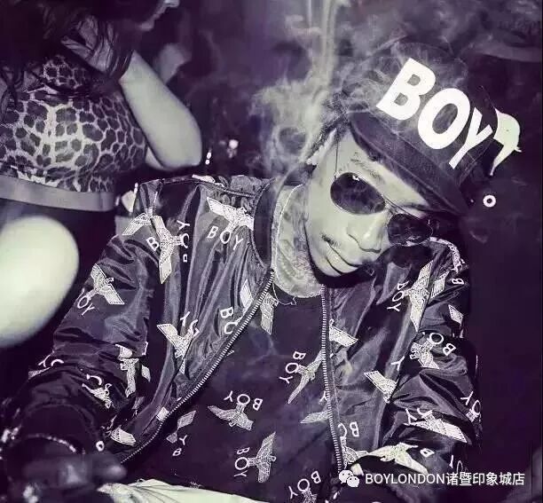 Wiz Khalifa更是BOY LONDON的忠实粉丝,满身的刺青搭配着BOY LONDON“鹰”味十足的T恤+个性的外衣,帅气十足,简直无法不让粉丝为之Crazy、Scream