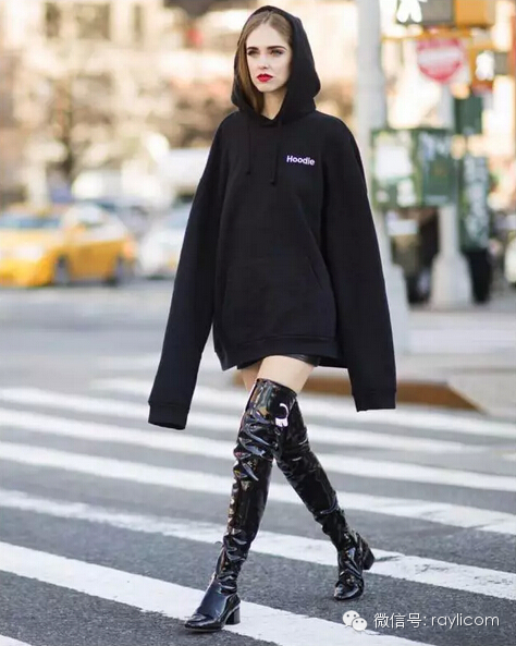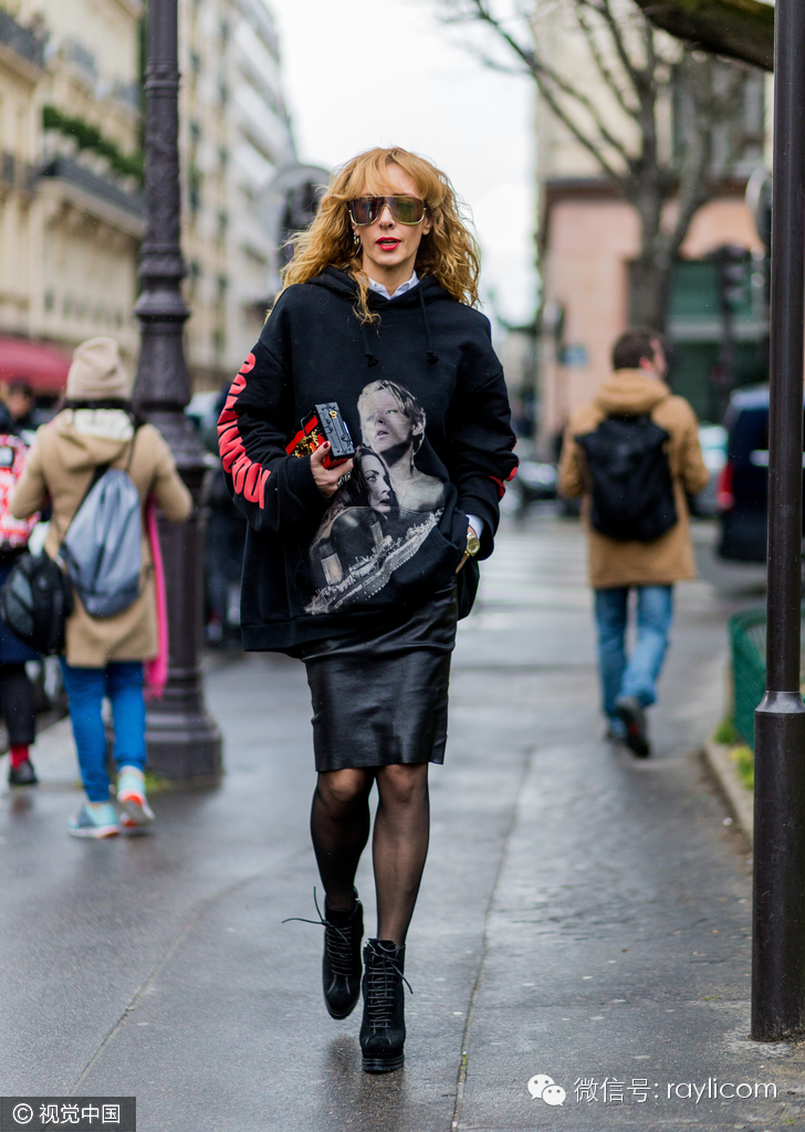 再点反差更强烈的,那就是帽衫+皮革质地,性感狂野的皮裤火皮裙,有了帽衫的组合,再也不会太过Over,瞬间带出实穿性。