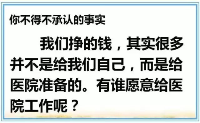 6,到了医院才知道:辛辛苦苦几十年,都是给医院打工了,不管你有多少钱,在医院也就只能买到一张床,从贫穷到富裕很难很难,但从富裕到贫穷也许就是那么一瞬间。