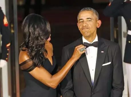 仪式时选用的是黑色领结,而晚宴则选用浅灰色领结,显得很轻松。
