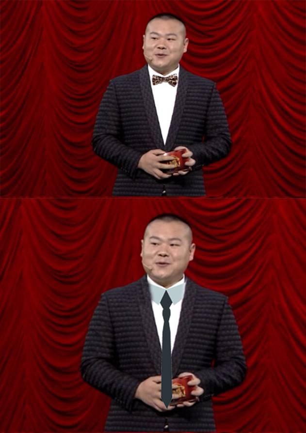一定穿正装的场合下,尽量选择领带。男神郭德纲和小岳岳都是属于满脸福相的人,他们戴领结时会感觉很可爱,不过打领带显得更正式优雅。