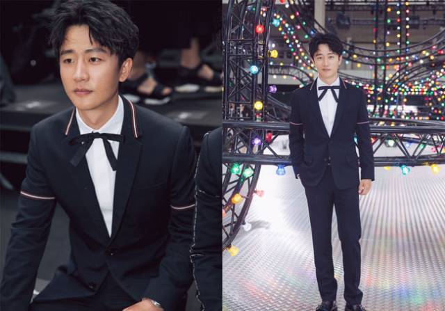 或者是黄轩出席Dior秀场所系的细长“飘带式领结”