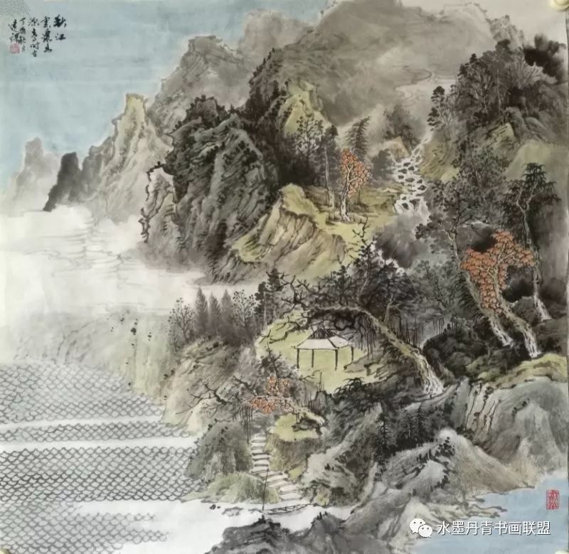 2015年作品巜秋山岫云》入选国家画院主办的"中国大连首届中国画大赛三年展"