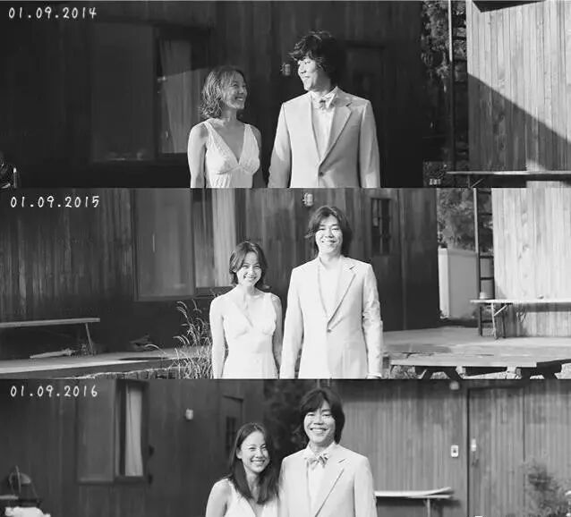 每年的结婚纪念日会拍同一张照片