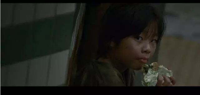 在这部影片中她不再是穿着可爱的裙子牵着心爱的狗狗一起快乐奔跑的少女,而是被扔在地铁10号储物柜的可怜小女孩儿。她与一群流浪汉挤在地下通道里生活,眼神中时刻保持着警惕。