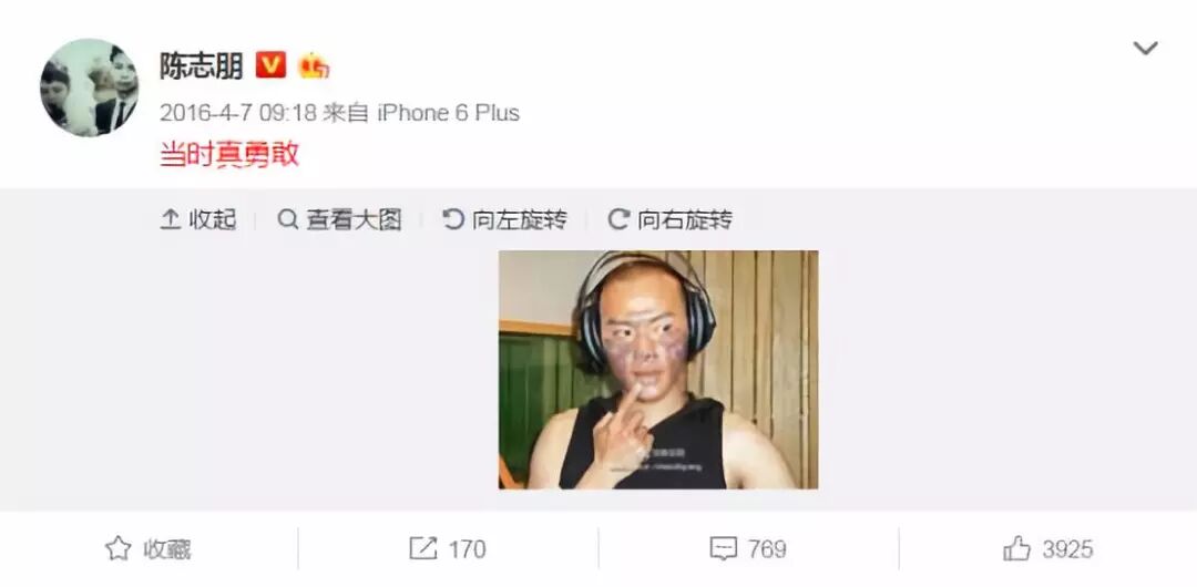 最近一次陈志朋上热搜,是因为有媒体发文说陈志朋的奇装异服是经纪公司威逼强迫导致的,尽管公司出面辟谣,还是有网友将信将疑地带着吃瓜心态在他微博下面回复“你要是被逼的你就眨眨眼。”