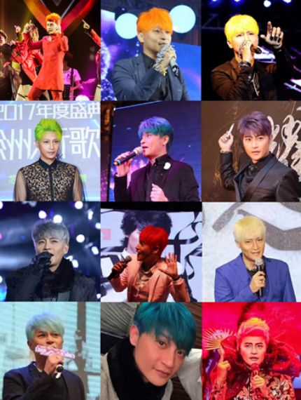 2017年亚洲新歌榜,陈志朋的一头鹦鹉绿毛和黑纱透视装瞬间被顶上热搜,回归大众视野。