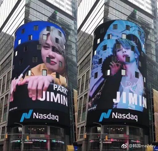 14日据媒体报道,防弹少年团朴智旻的中国粉丝(JIMINBAR CHINA)为庆祝防弹少年团本次回归,从12日(当地时间)开始到18日为止在世界著名景点美国纽约时代广场纳斯达克大银幕上投放了印有朴智旻形象的广告画面。