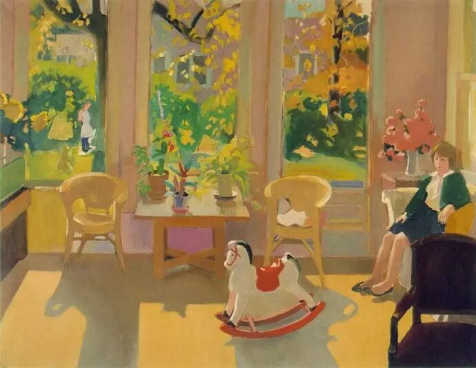 图为美国保守乡土画家和艺术评论家Fairfield Porter (1907–1975)的作品。树叶枯黄,落木萧萧,展现了深秋景色的绚烂。同时似乎也在悄悄告诉我们:“冬天来了。”