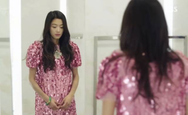 作为同款女王,新剧一更新,服装扒皮就来了。当年ysl星你色的大热程度还历历在目,如今D&G家的粉色亮片连衣裙就已经火到四面八方。而它在女神身上的演绎就像这部剧一样,略带着争议。或许因为原本对全智贤产后复出的作品期望太高,许多人难免在看完第二集后产生了些许失落(不过从第三集开始,好像期望值又有所回升)。