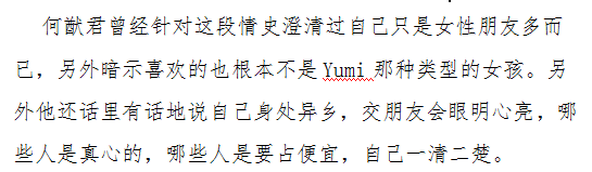 而且最最最狗血的是,何猷君还在网上用英文写过一段话,自曝有过背着女朋友两个月内召妓两次的经历!