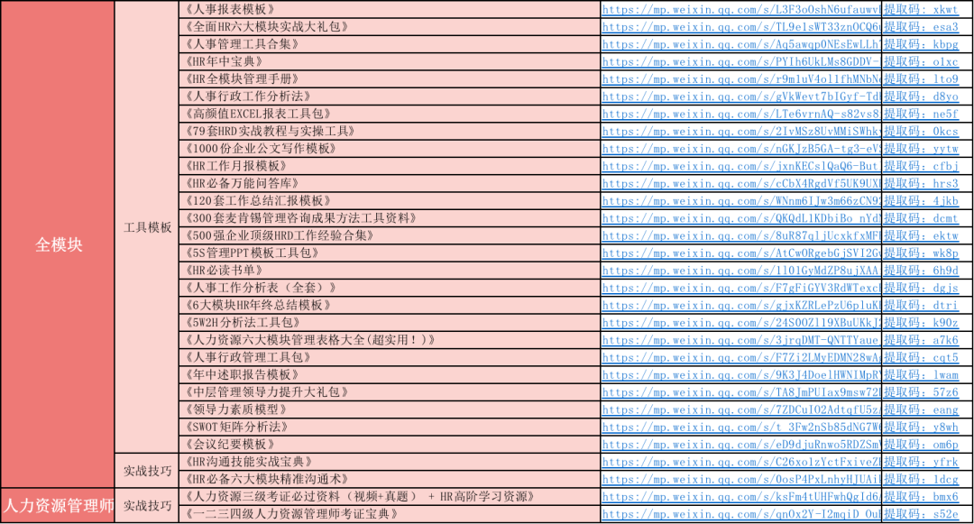 目前已按模块整理发布260+期HR资料,百度网盘总大小200G+