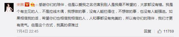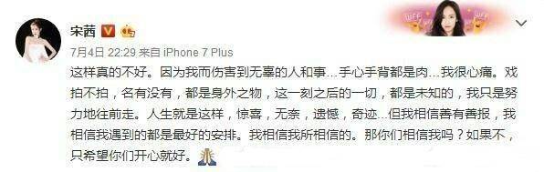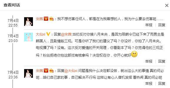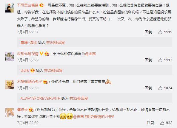 宋茜也在自己的微博下面回复粉丝们的评论称自己不想伤害任何人,希望粉丝们相信自己,不要乱用“怼”这个词,这个字是给讨厌的人用的。