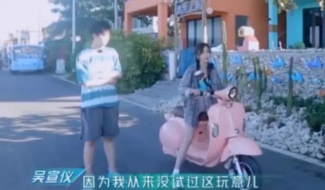 节目中,吴宣仪表示说自己“从来没试过这玩意”,也就是第一次骑电动车。