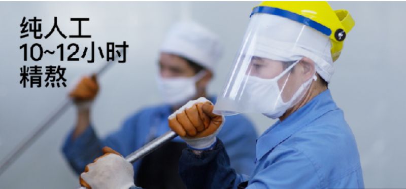 为了保证黑糖的质量与安全,田海蓉不惜买入10万级无尘洁净空间熬糖,制糖世家第六代传人王氏兄弟俩佩戴消毒口罩、消毒卫生帽、消毒手套,将当天收割的甘蔗经过切碎碾压,然后把压出来的汁液去除泥土、细菌、纤维等杂质。