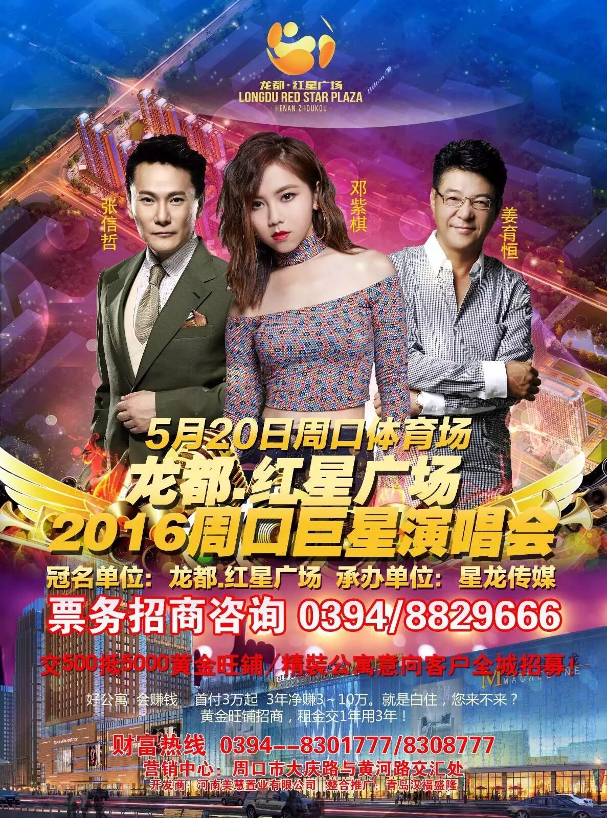 2016年5月20日晚8点由龙都.红星广场冠名、星龙传媒承办的“星耀龙都唱响周口”2016周口巨星演唱会强势来袭,震撼唱响。