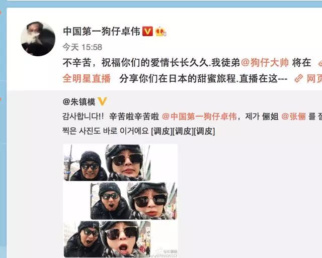 今天,卓伟曝光了朱镇模和张俪的恋情,朱镇模发微博承认,并且还谢谢了狗仔?...