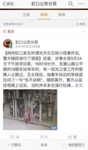 晚上19点15分左右,虹口警方发布官方微博,对所谓绑架事件进行了澄清。