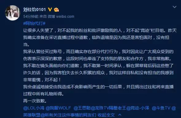 而到了6月9日晚上七点半,阿怡本人终于站了出来,承认曾经买过账号,而且确实存在部分代打行为。